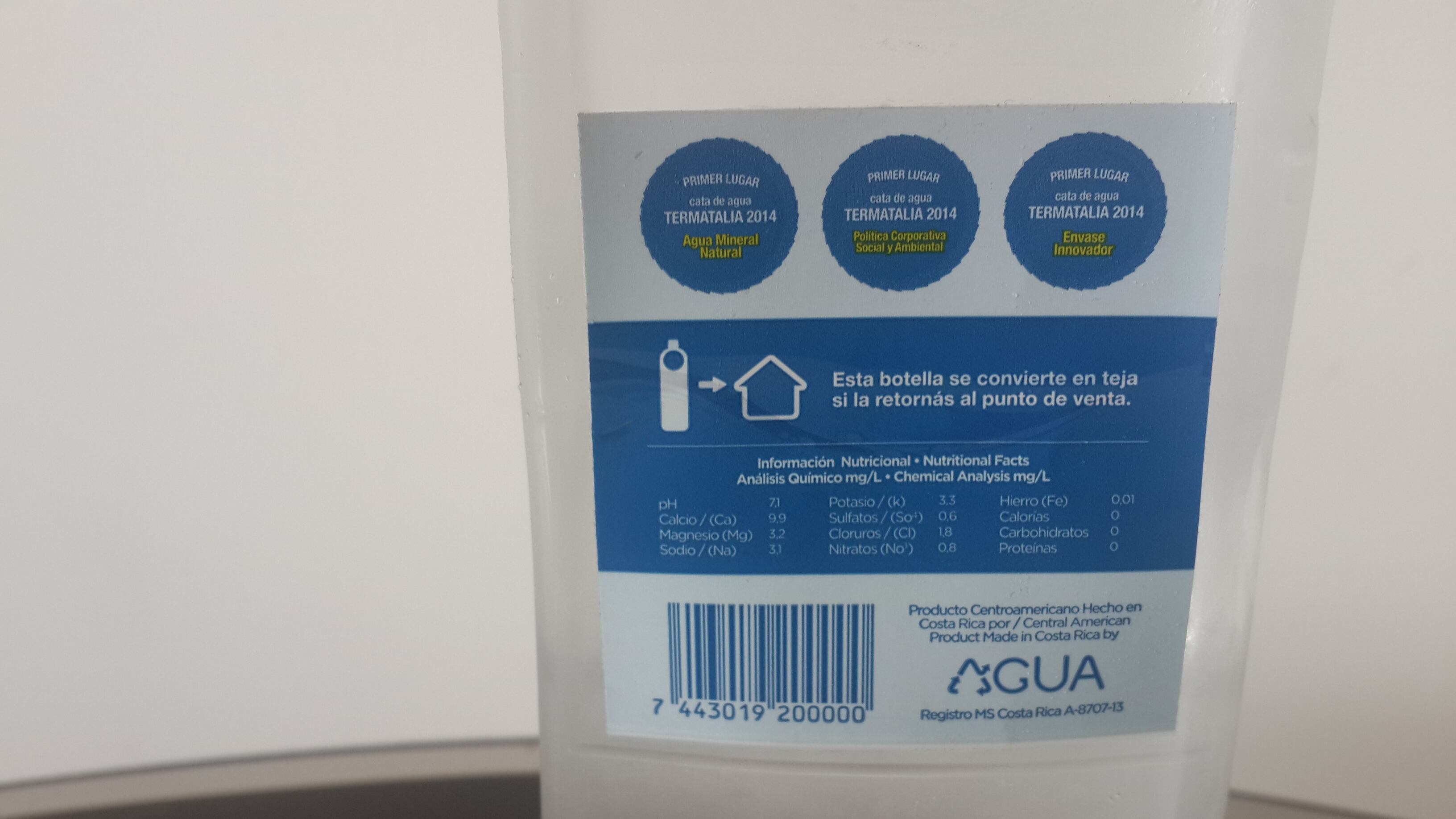 Agua Costa Rica vende botellas de agua. Los envases de plástico son devueltos por los consumidores al sitio en el que los compraron y se emplean para construir techos en viviendas y proyectos de interés social.