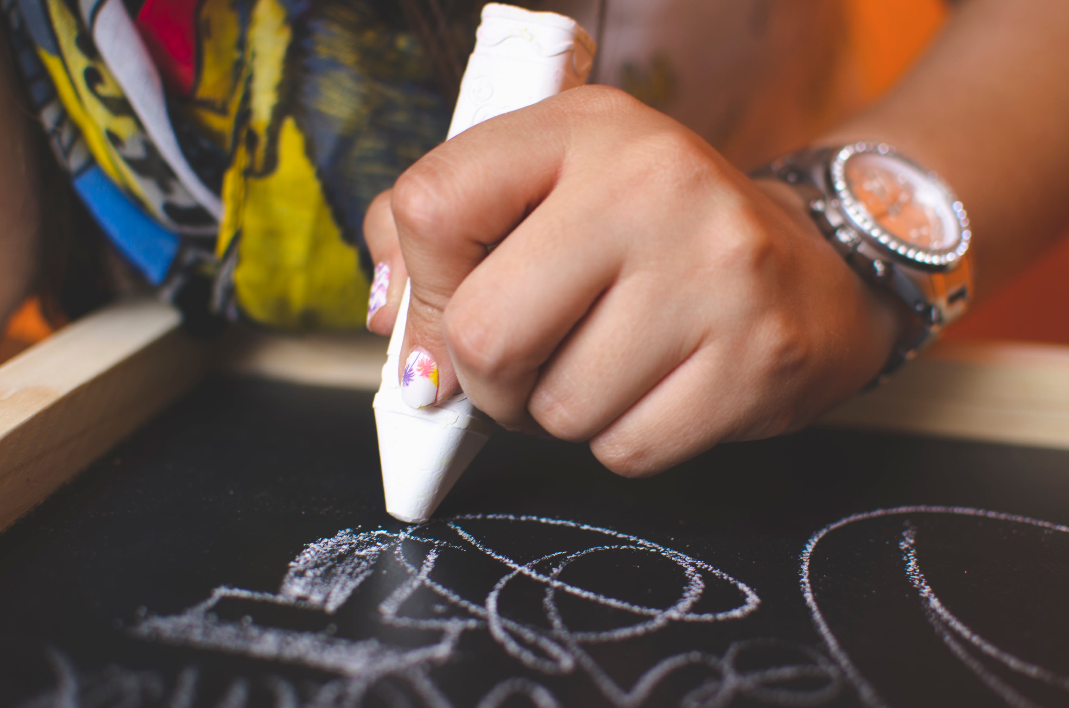 Milena lo hace en pizarras, paredes, espejos y madera.