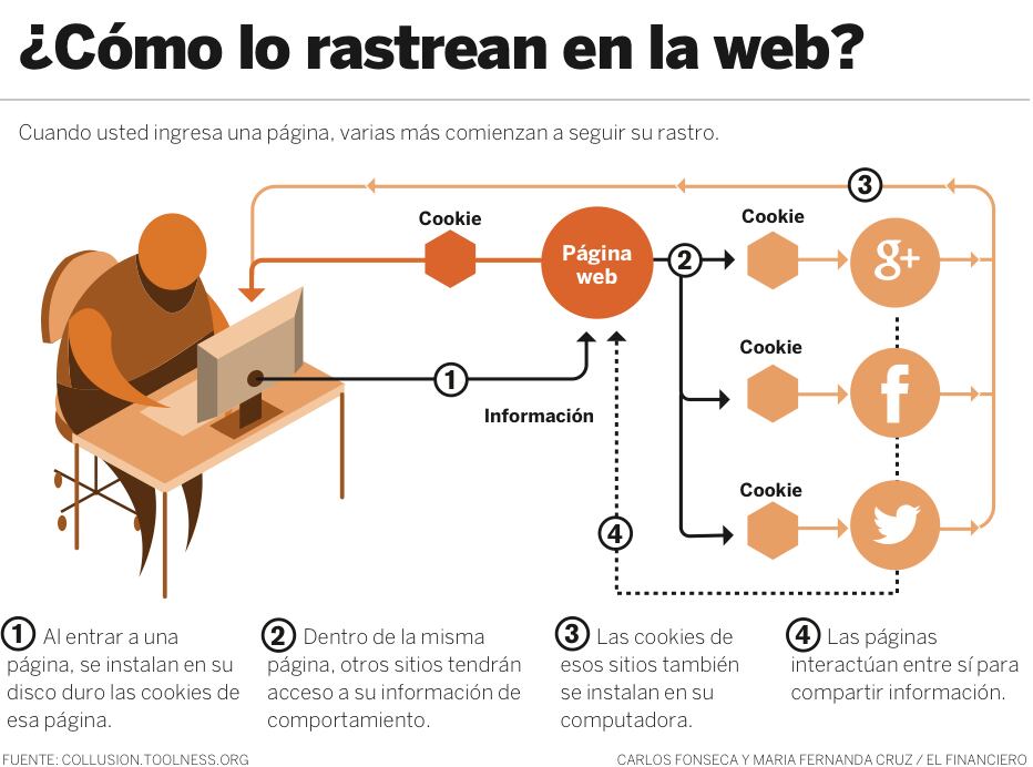 Los sitios guardan dentro del disco duro de las computadoras pequeños fragmentos de información llamados cookies a los que acceden cuando el usuario vuelve a ingresar a la misma página, con el fin de crear una experiencia personalizada.