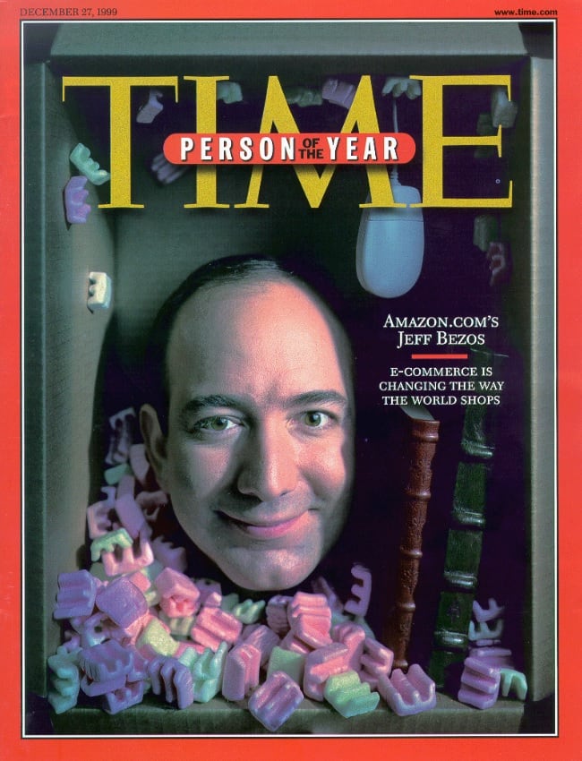 Así se convirtió en el ícono del comercio electrónico y de la primera era de Internet, con las puntocom, y su fundador, Jeff Bezos, fue coronado como el hombre del año por la revista Time en 1999.
