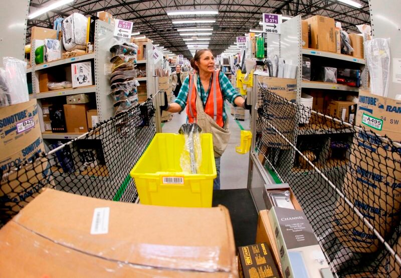 Theresa White despacha una orden en el centro Amazon en Tennesess. Las webs de los comercios estadounidenses participaron hoy, casi sin excepción, de “la fiebre” del “ciberlunes”. (AP para EF)
