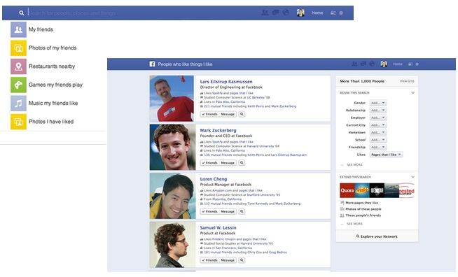 “Las búsquedas en línea están diseñadas para brindar los mejores resultados asociados con unas palabras claves que introduce el usuario. Graph Search toma esas palabras y busca las personas, los lugares, las fotos y otros contenidos que han sido compartidos en Facebook y que están relacionados con esas palabras. Creemos que tienen usos distintos”, dijo Facebook en su blog, al dar a conocer la versión beta de Graph Search.