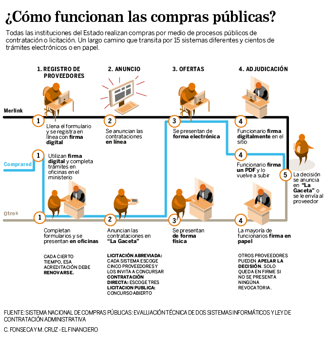 Racsa le cobrará $571.441 a Hacienda anualmente. Un monto menor al que implicaba la operación de Mer-link ($1,8 millones) y la de Comprared ($1 millón) al menos hasta el año pasado, según un informe de la Dirección General de Administración de Bienes y Contratación Administrativa (DGABCA).