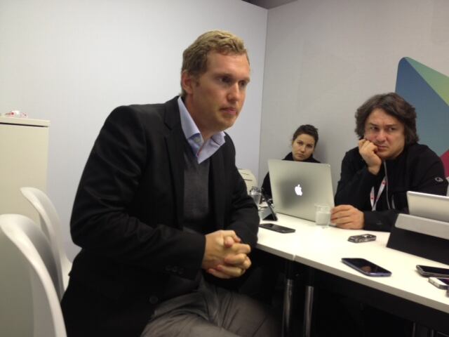 Lagerling atendió a un reducido grupo de periodistas internacionales en una pequeña sala de reuniones en el salón 2 de la Fira Gran Vía.