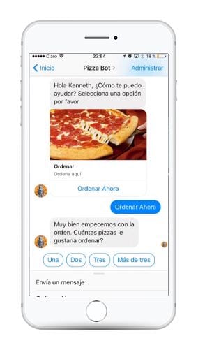 -Buenas tardes, quiero ordenar una pizza- dice el usuario, -¿de qué tamaño la quiere y de cuál sabor?- le pregunta un chatbot, y así progresivamente se va a generar una orden en la cual los pizzeros pueden trabajar de forma más ágil y un cliente que está satisfecho por ser atendido sin largos tiempos de espera.