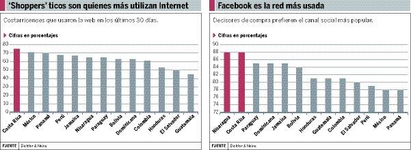 En Costa Rica el 75% de los shoppers usa Internet, seguido por México (71%) y Panamá (70%).