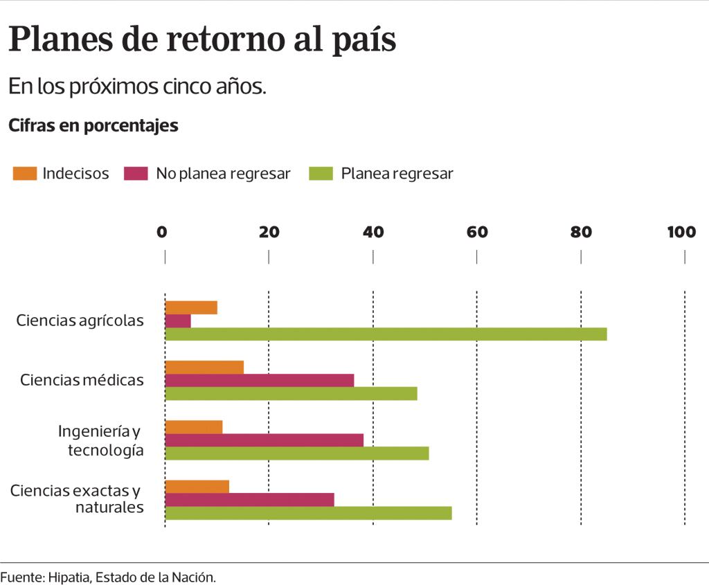 La tendencia de querer volver al país también se da en las otras áreas consultadas por Hipatia, que son ciencias exactas y naturales, ciencias médicas y ciencias agrícolas.