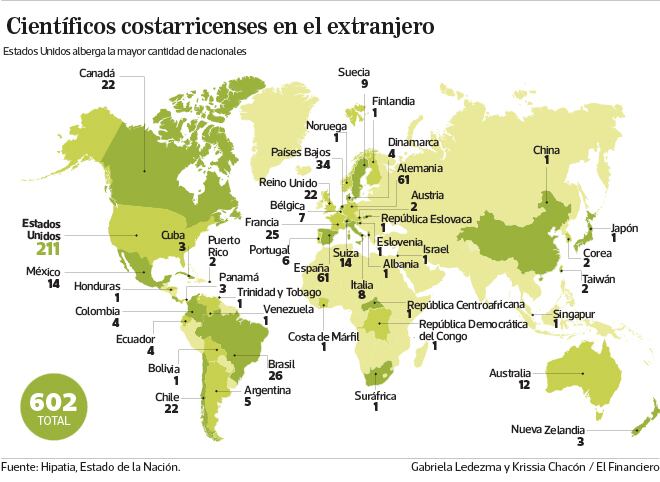 Estados Unidos es el país que más alberga costarricenses, según Hipatia son 211, seguido por España y Alemania en donde son 61 en cada uno.