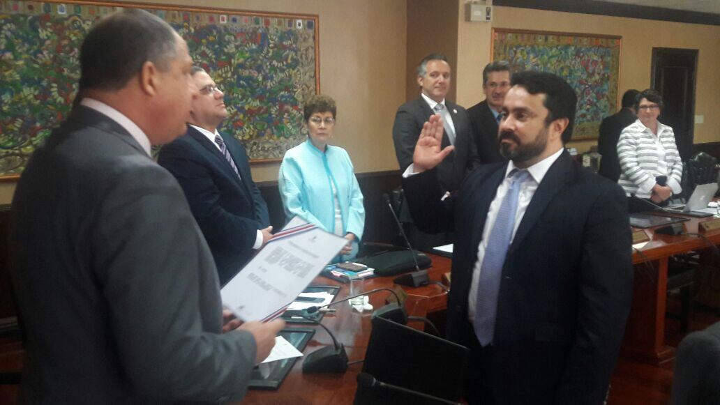 Edwin Estrada fue juramentado este martes 17 de mayo como nuevo viceministro de telecomunicaciones por el presidente de la República, Luis Guillermo Solís.