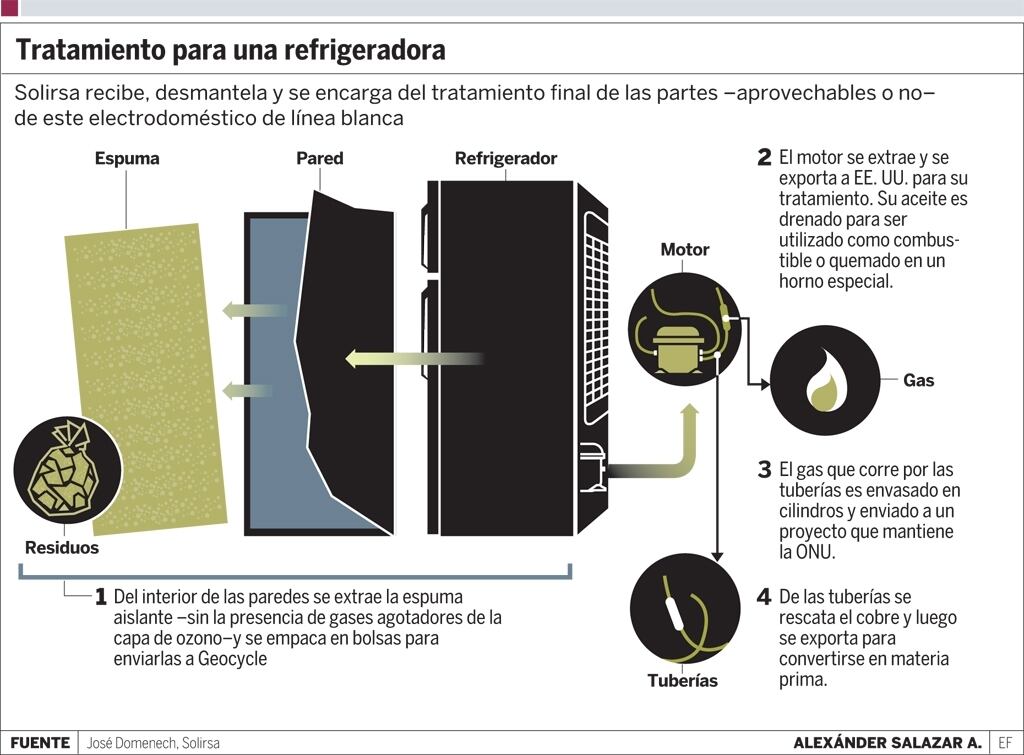 Se trata de un proyecto para la desmantelación y el tratamiento de refrigeradoras desarrollado por la empresa Solirsa, en conjunto con Asegire.