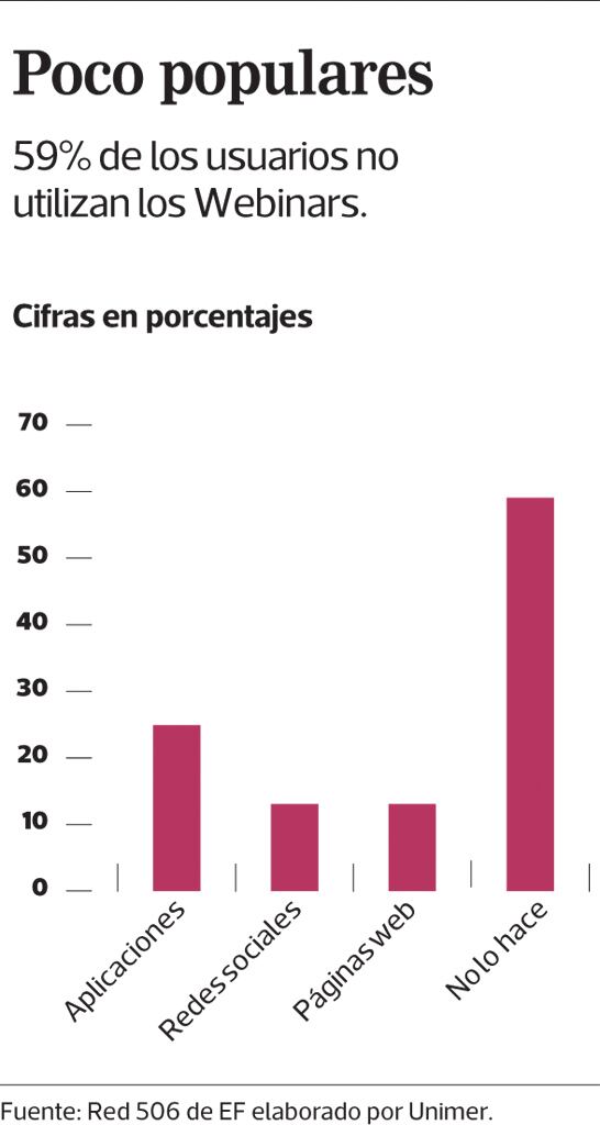 El 59% de los encuestados dijo no haber participado nunca en un webinar . De hecho fue de las actividades en Internet que menos mencionaron los usuarios.