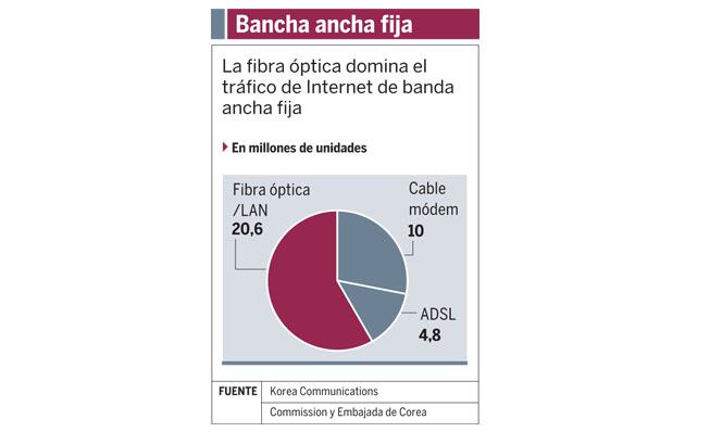 Esto convierte a Corea en el país con mayor penetración de Internet de banda ancha móvil ( 100,6 %) y el sexto (35,4%) en el acceso con redes fijas.