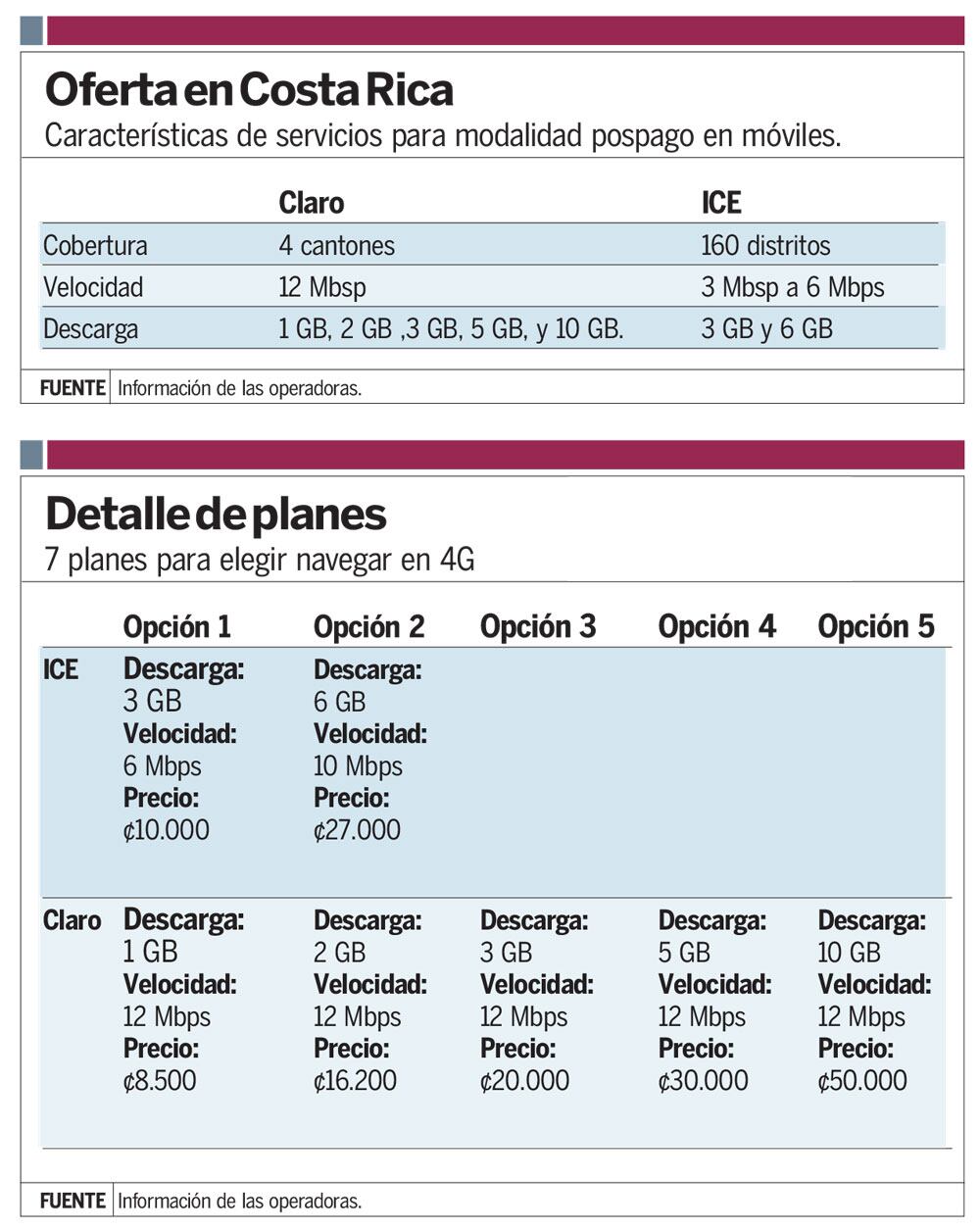 Las otras tres que incluyó Claro van de los ¢16.200 a los ¢30.000 con velocidades entre los 2 GB, 3 GB y 5 GB.