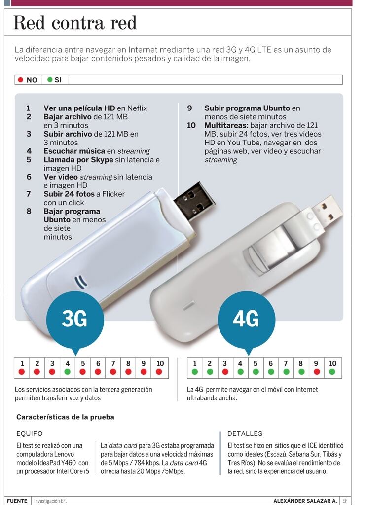 El ensayo se realizó utilizando una data card 4G LTE proporcionada por el Instituto Costarricense (ICE) y otra 3G propiedad de este semanario.