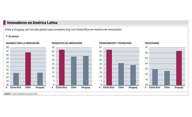 El Índice Global de Innovación 2013 ubica a Suiza como el país más innovador del mundo con un puntaje de 66,6 puntos. Por regiones, Costa Rica (41,5) lidera América Latina y el Caribe, India (36,2) es el ganador del Centro y Sureste de Asia, y China (59,4 ) es el más innovador en el sur de Asia y Oceanía.
