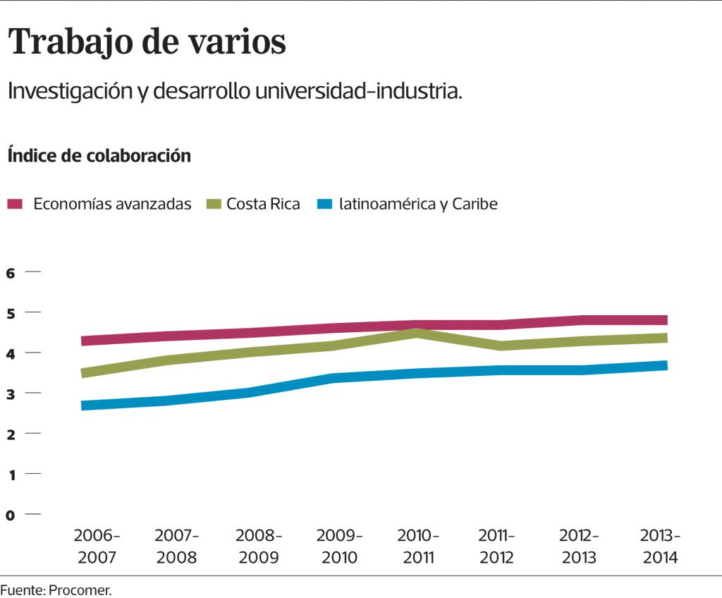 Aunque en las universidades hay una débil percepción hacia el emprendimiento y el mundo de los negocios, el desarrollo del sector ha estado mucho más vinculado entre las empresas y la academia que en el resto de Latinoamérica. Falta pues el índice de colaboración es inferior al de las economías avanzadas.