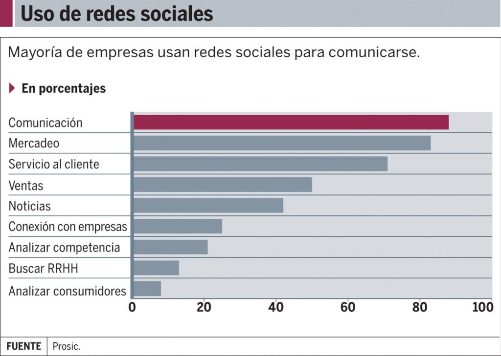 La mayoría tiene cuenta en Facebook y lo emplean para emitir mensajes o comunicarse con sus clientes, pero solo un 8% de quienes utilizan las redes las aprovechan para estudiar el comportamiento de sus seguidores
