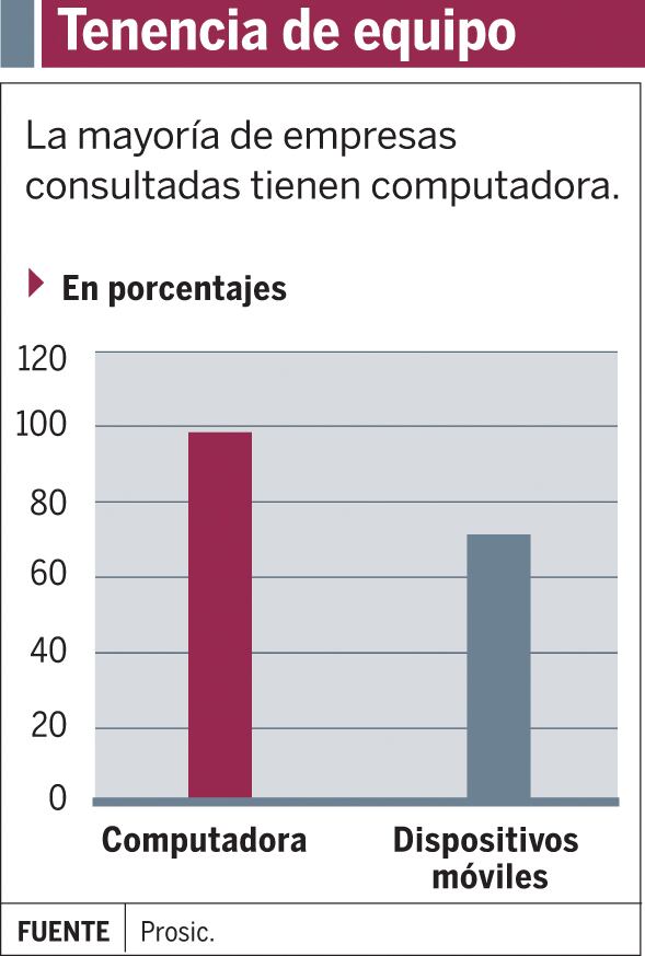 Este año, el sondeo realizado entre 42 empresas (un 98% de ellas mipymes) muestra un clima frío en el uso y apropiación de la tecnología de la información y comunicación (TIC): las firmas tienen computadoras en el 98% de los casos, dispositivos móviles en el 71% y todas tienen acceso a Internet.