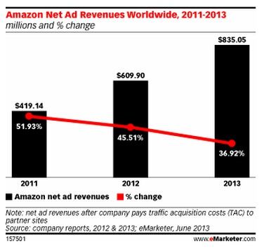 La publicidad le dejó a Amazon $610 millones de ingresos en el 2012 y podría dejarle $835 millones este año.