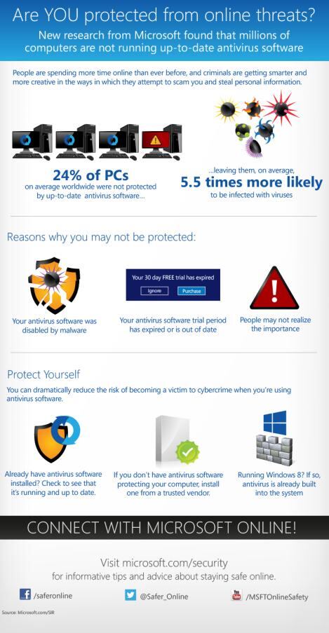 “El antivirus ayuda a proteger en contra de virus, a eliminar infecciones y a proteger la privacidad de la gente. Navegar por Internet sin una solución de este tipo actualizada es como dejar la puerta de la casa que da a la calle abierta a los delincuentes”, explica Tim Rains, director de Cómputo confiable en Microsoft.
