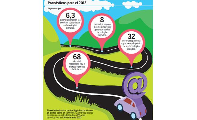 El crecimiento en el sector digital estará tanto en bienes como en servicios, asegura. “Estimamos que los bienes aumentarán alrededor de un 4% y los servicios, sobre el 16% durante 2013”.