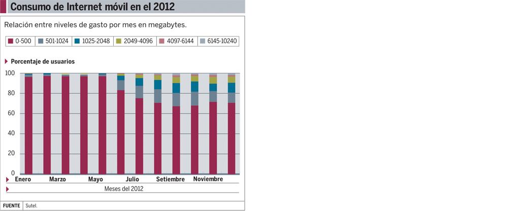 Las operadoras coinciden en que el consumo de datos es constante desde el 2012, debido a que cada vez más usuarios consumen Internet desde planes prepago y ellos demandan menor cantidad de datos por mes, por lo que la balanza se inclina a la baja.