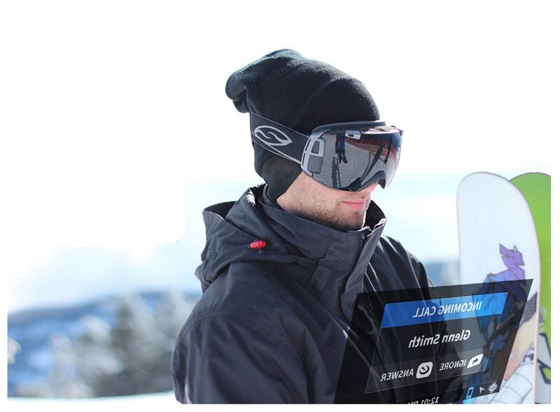 La edición de enero de la revista tecnológica Wired describe anteojos para esquiadores con un panel que muestra al usuario la velocidad, la altitud y descenso vertical. Las gafas ofrecen una vista de navegación que usa un GPS para trazar la posición de las estaciones de la ruta en un mapa y una pantalla para acceder a una cámara.