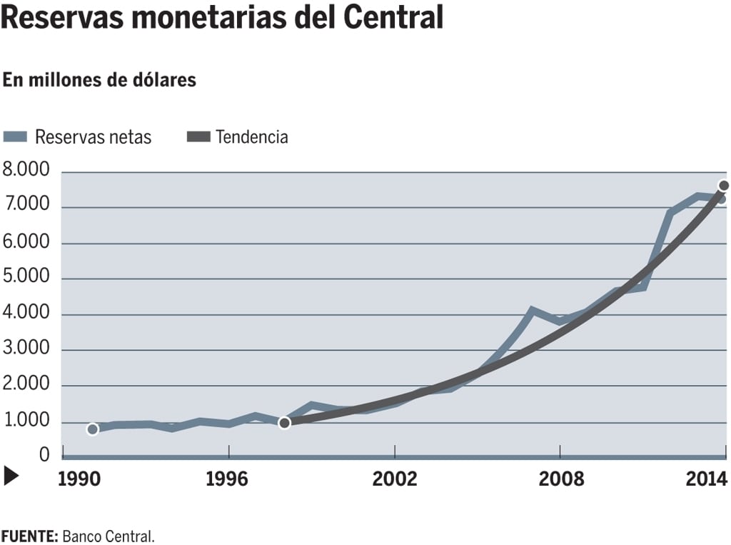 Un aumento constante de las reservas en un contexto de tipo de cambio fijo o semifijo (como las minidevaluaciones) es una señal indiscutible de la subvaluación de la moneda local (el tipo de cambio debería ser más bajo).