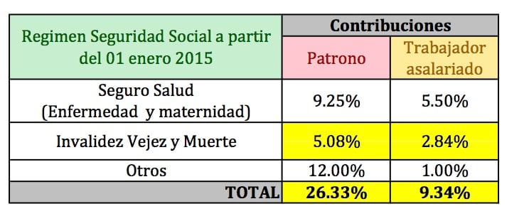 El aporte tripartido al régimen básico contributivo de IVM que corresponde asumir a patronos, trabajadores asalariados y al Estado actualmente es de un 8.00% y en las primeras horas del primer día del 2015 pasará a 8.50%. Ese ajuste del 0.50% será distribuido en partes iguales entre cada uno.