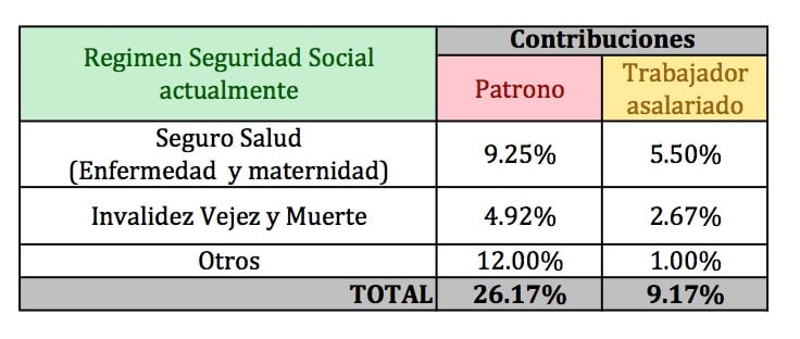 Actualmente solo por concepto de IVM, sin incluir el régimen del Seguro de Salud, una empresa debe cancelar a la CCSS un monto equivalente al 4.92% del total de su planilla mensual, el trabajador asalariado un 2.67% de la remuneración que recibe, y el Estado un 0.41%. A partir del aumento programado, el patrono soportará un 5.08%, sus empleados un 2.84% y el Estado un 0.58%