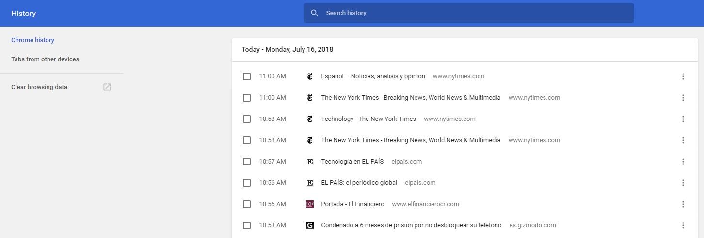 Podrá ver las páginas que ha visitado y marcar las que desea borrar.