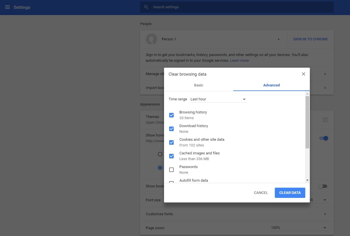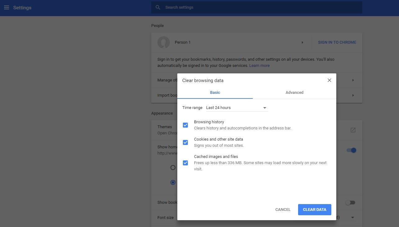 También puede dar clic a Limpiar datos de navegación o Clear browsing data. De inmediato se abrirá una ventana con dos opciones: básica y avanzada.