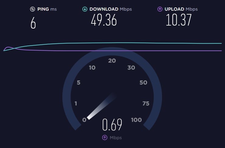 Cuando ya el servicio estaba configurado, la medición en el dispositivo del técnico del ICE indicaba que la velocidad era la contratada, los 50 Mbps. ¿Sería siempre así?