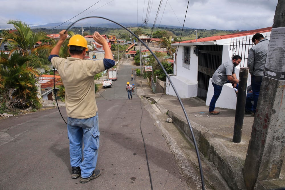 En algunos sitios eso puede implicar largas distancias. En Guararí de Heredia en una instalación desplegaron fibra óptica por hasta un kilómetro. Alguien aprovechó y cortó el cable. Volvieron a tirar el enlace, esta vez con el apoyo de otros equipos. En el poste del frente de mi apartamento había puertos disponibles.