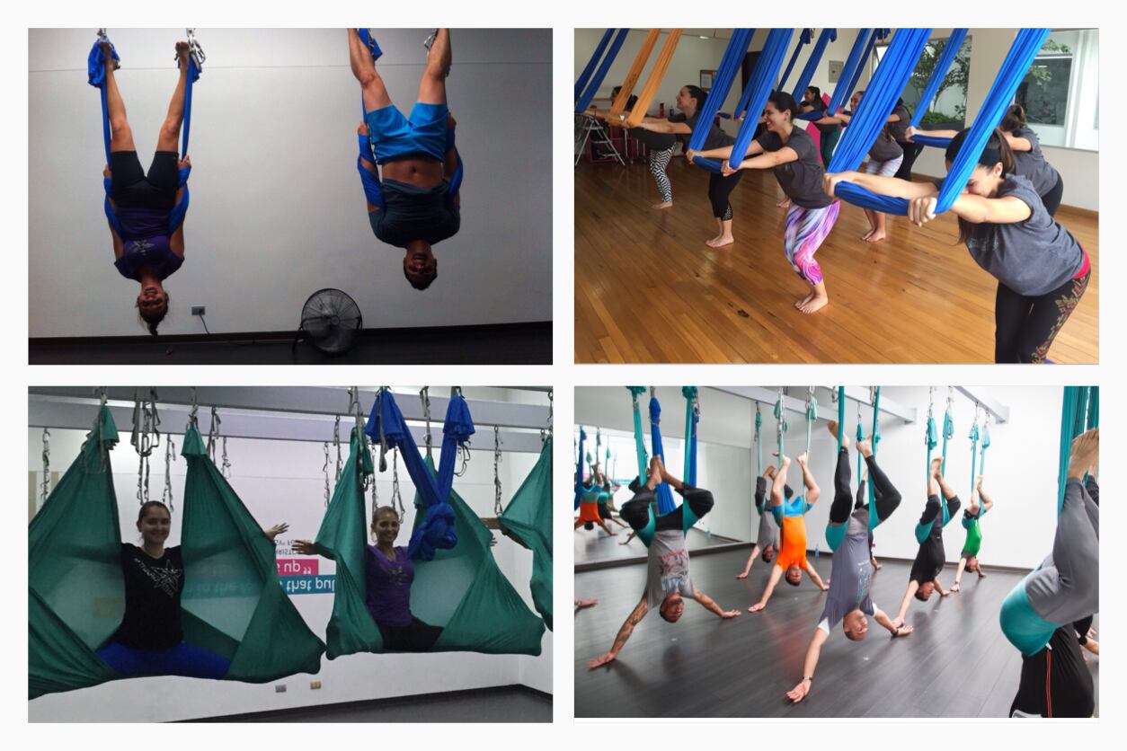 “La cabeza es lo más pesado que tiene su cuerpo: los aplasta todo el día. Al estar invertidos, su peso jala las vértebras y hace que se libere espacio entre ellas y se relaje su espalda. Al salir van a haber crecido 1 cm ¡Se los garantizo”, afirmó Melania Fernández Porras, directora de Andamio Escuela de Movimiento e instructora certificada de AntiGravity® Yoga , la clase que estaba probando en ese momento.
