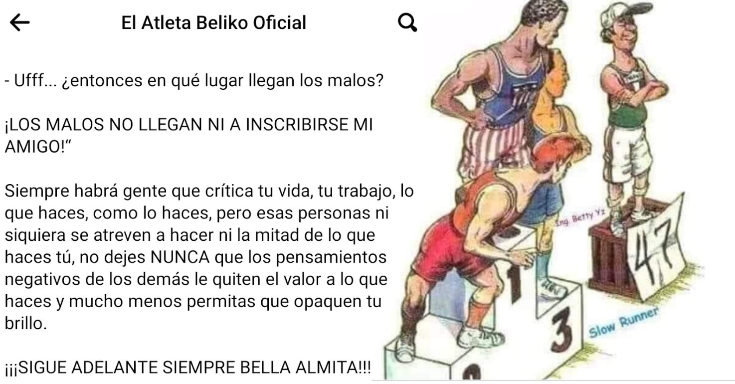“Los primeros en llegar revisan el tiempo que hicieron y celebran solo si logran su hazaña de mejorarlo o de llegar en mejor condición que la última carrera en la que duraron lo mismo o esas cosas... Nosotros, los late runners, [corredores tardíos] celebramos el hecho de haber llegado. ESA es nuestra hazaña y la celebramos como tal”, contó.