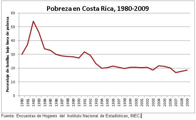 Una consecuencia de más largo plazo que aún continuamos pagando es que a raíz de la crisis la deserción escolar aumentó drásticamente entre 1980 y 1985, especialmente en secundaria, ya que las familias mandaban a sus hijos a trabajar. La cobertura de secundaria no se recuperó hasta 1999, lo que explica que hay toda una generación perdida de costarricenses con baja escolaridad, con su respectivo impacto en sus posibilidades de trabajo e ingresos a futuro. Esta es una de las grandes causas, aunadas al sistema económico mercantilista que tenemos, del por qué no se ha logrado reducir la pobreza en las últimas dos décadas y del por qué ha sido tan difícil combatir la desigualdad.