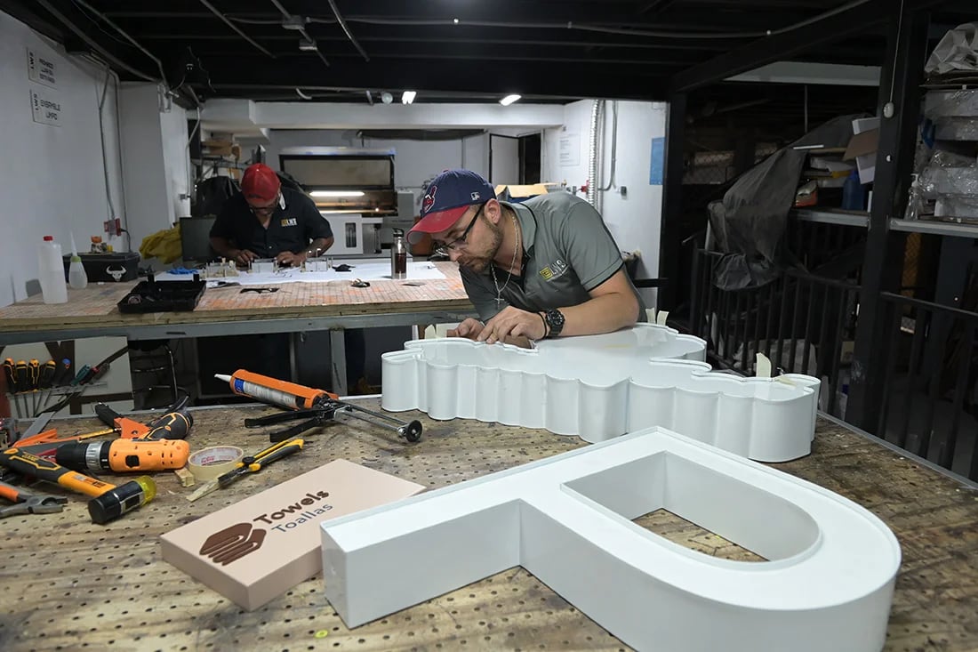 Cuando empezaron trabajaban en un pequeño espacio de 52 mts2, hoy su empresa cuenta con un edificio de 1200 mts2 desde donde diseñan y producen todo lo que tiene que ver con construcción de marca y rotulación de las principales empresas, tanto nacionales como extranjeras, públicas y privadas.