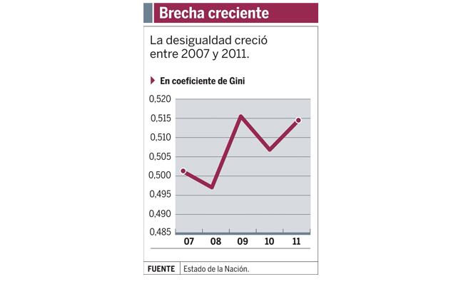 El crecimiento de la desigualdad en 2011 se dió pese que un buen desempeño económico provocó un crecimiento en los ingresos promedio de la población, según el Estado de la Nación.