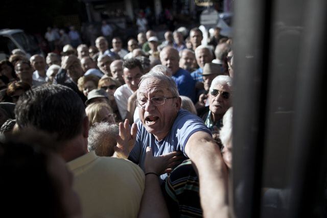 Atenas.- Que nadie le hable de los años felices a Michaelis Kotaras. El pensionado de 78 años tuvo que salir el miércoles de madrugada a hacer dos largas filas frente al Banco Nacional de Grecia para tener el privilegio de retirar 120 euros ($134), menos de la cuarta parte de su pensión mensual.
