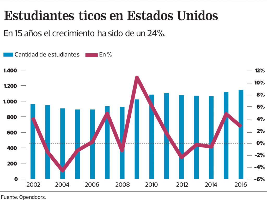 Por otro lado, el número de estudiantes universitarios costarricenses que eligen Estados Unidos para formarse invita a pensar en positivo. En el último año las estadísticas reportaron un crecimiento del 3%, según datos provenientes del Instituto de Educación Internacional de los Estados Unidos (conocido como Open Doors ).