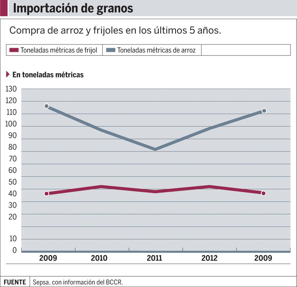 Empero, ha sido el arroz el que presentó una tendencia al alza, con un crecimiento de un 46% en los últimos tres años, mientras el frijol se mantuvo con un comportamiento constante.