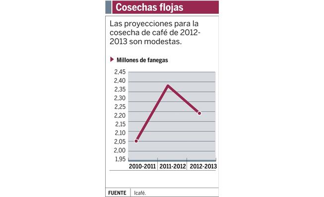 La merma se presenta después de un poderoso repunte de la producción experimentado en la cosecha de anterior. En ese periodo se registró un crecimiento del 13,2% con respecto a las 2,10 millones de fanegas de 2010-2011.