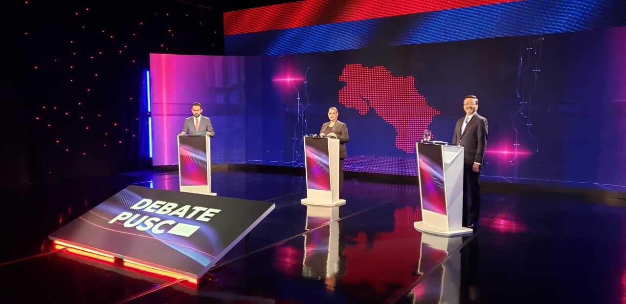 Debate del PUSC en Repretel. De izquierda a derecha: Erwen Masís, Lineth Saborío y Pedro Muñoz. Foto: Repretel.