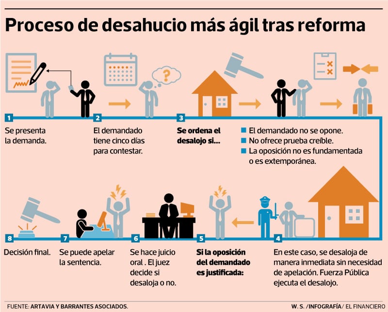 Otro cambio trascendental es que se reduce el plazo que tiene el inquilino para oponerse a una demanda. Antes el afectado podía dar sus alegatos en 15 días hábiles y ahora solo cuenta con cinco días para contestar.