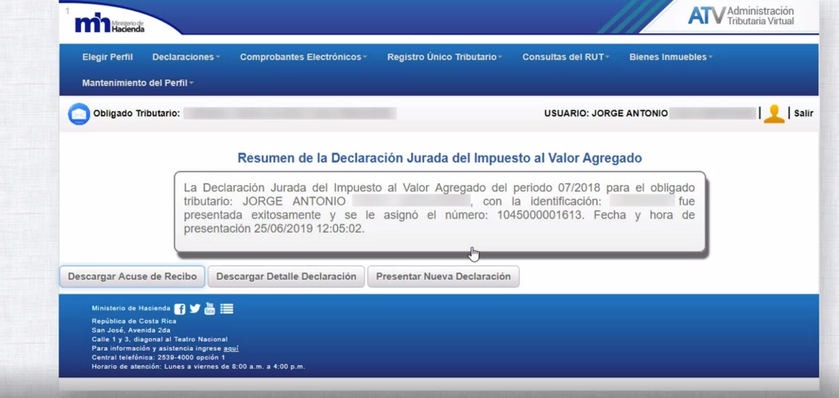 1. Ingresar al sitio web www.hacienda.go.cr/ATV donde encontrará la Declaración Jurada del Impuesto al Valor Agregado a partir del 1 de julio. Durante el sábado 29 y el domingo 30 de junio el sitio estará deshabilitado por ajustes que requiere la plataforma con el nuevo impuesto.