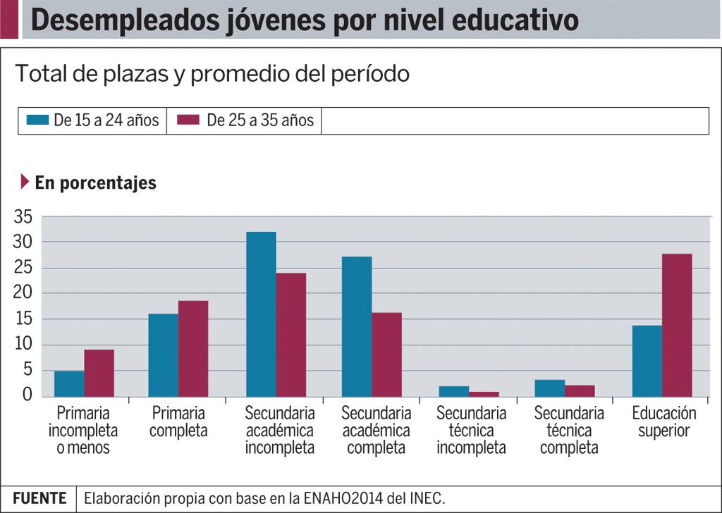Pero la suerte de Alvarado no llegó para 154.122 jóvenes en edades entre 15 y 34 años que durante el 2014 formaron parte de la estadística de desempleo en el país, según cifras de la Encuesta Nacional de Hogares (Enaho), elaborada por el Instituto Nacional de Estadística y Censo (INEC).