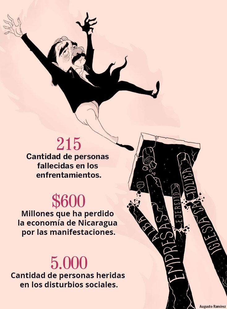 Los datos son contradictorios. Las organizaciones de derechos humanos contabilizan más de 215 muertos y 5.000 heridos, mientras que el Gobierno de Nicaragua defiende que la cifra de fallecidos apenas alcanza los 46.