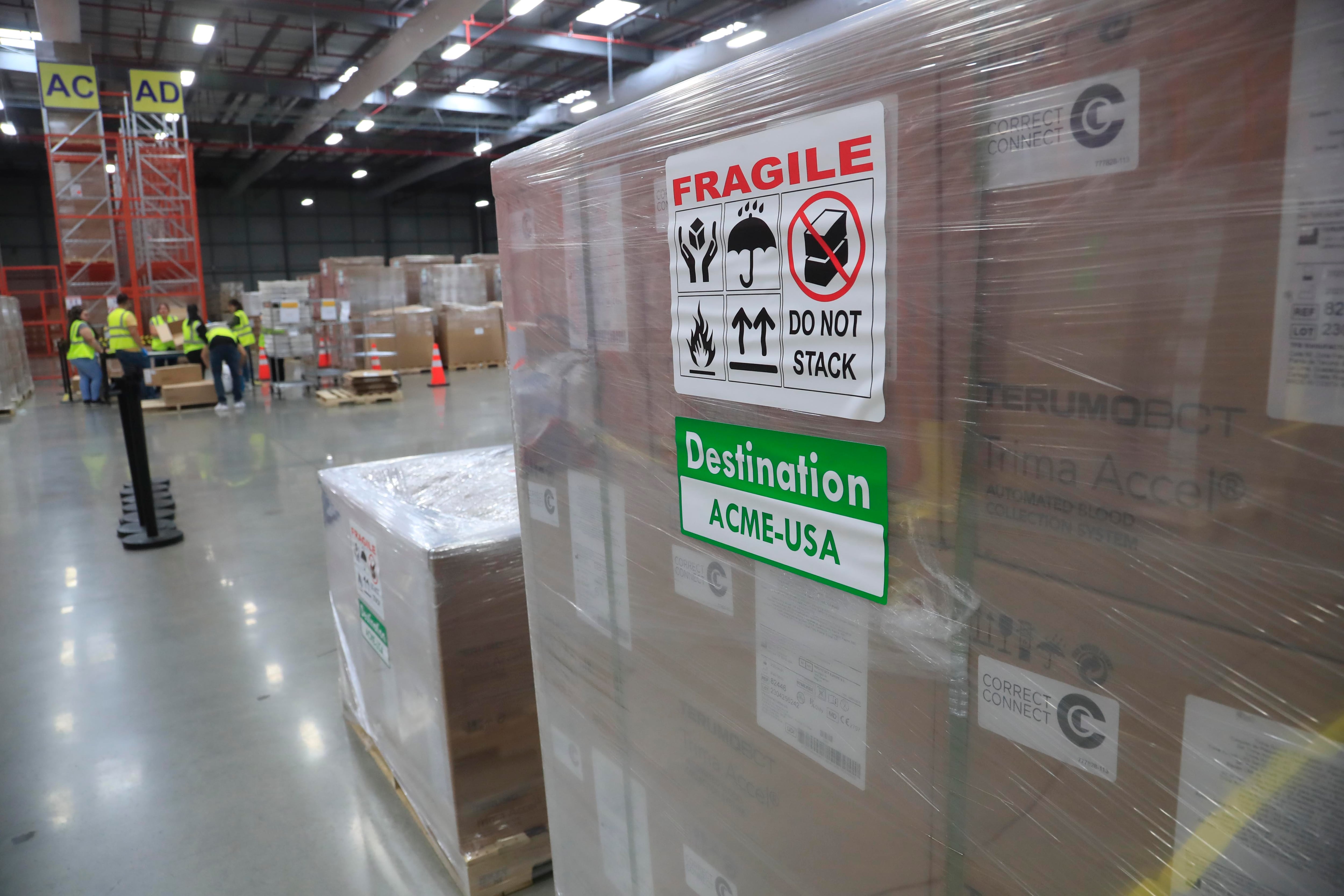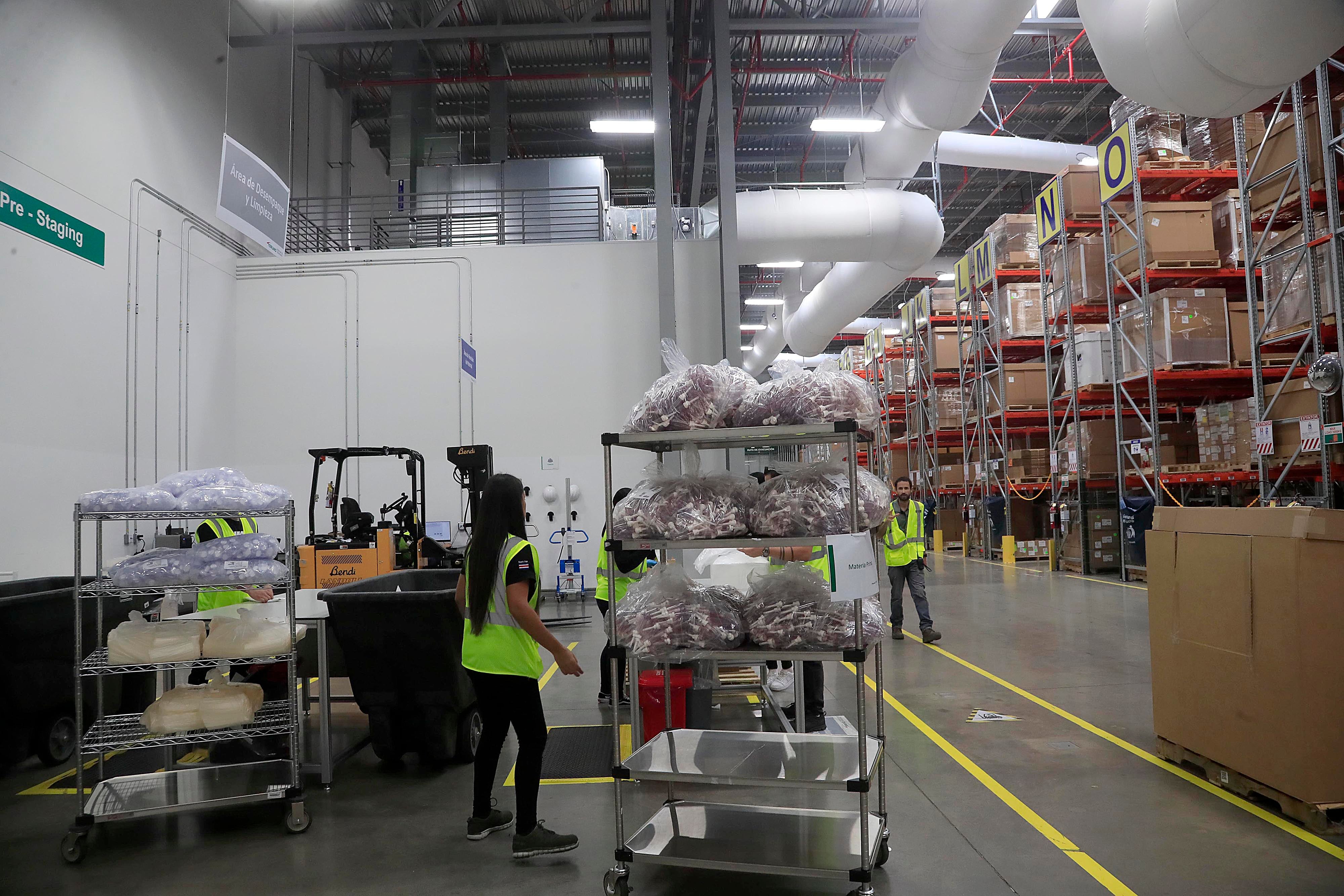 Estos empaques se dirigen a una enorme bodega con amplios y altos estantes. Trabajadores y montacargas protagonizan un ajetreo constante. Al entrar se ven cajas agrupadas y emplasticadas con una etiqueta donde se lee “destination” seguido de un país como EE.UU. o Bélgica. Los paquetes están listos para partir y llevar la marca de Costa Rica a la medicina mundial.