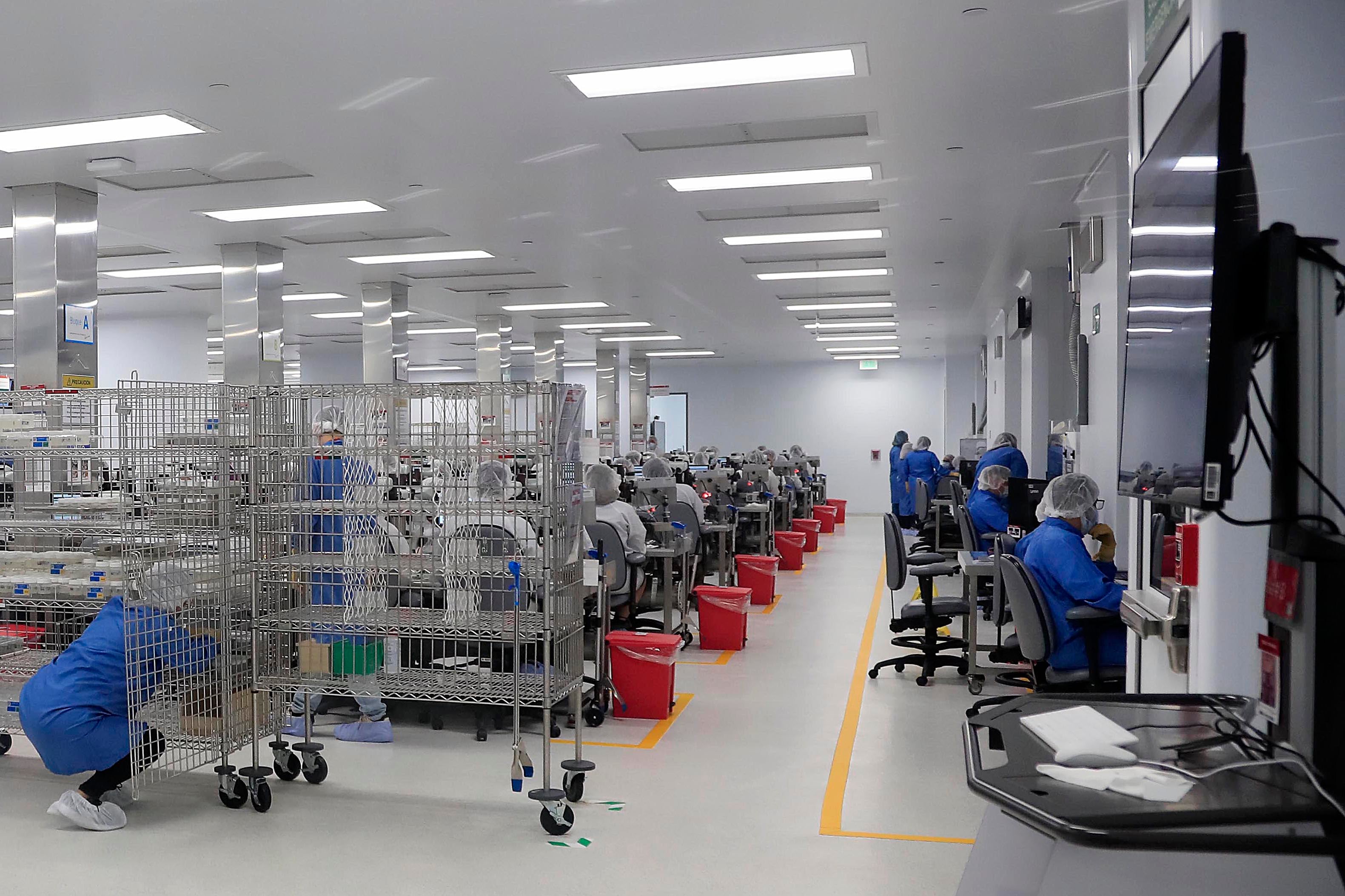 En los cuartos limpios es donde sucede la magia de la manufactura. Cientos de personas, que trabajan en dos turnos, se sientan en filas una al lado de la otra para hacer lo que se llama fusión por solvente, que consiste en unir piezas plásticas una por una.